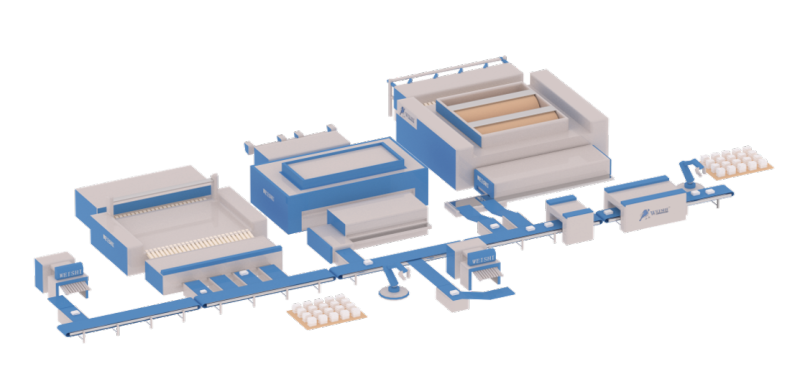 折香機后布草依次進入自動打包機,經過充填、裹包,封口、計量等工序,該設備可提高工作效率、減輕勞動強度,適應大規模生產需要,并滿足清潔衛生的要求。